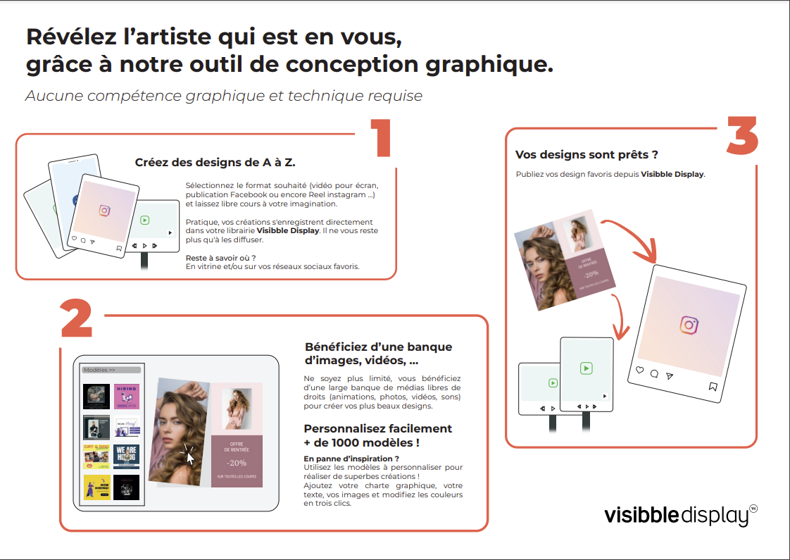 Page tuto sur la personnalisation de contenu sur le logiciel "Visibble Display" à intégrer dans le magazine Vitrinemedia.